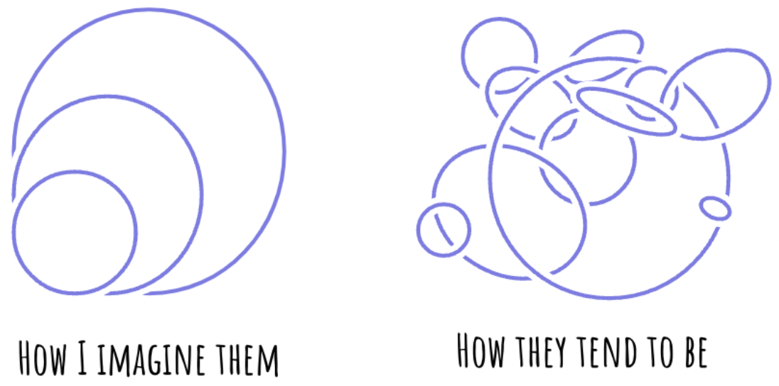 In this jungle, there are multitudes of models, both “what is” and “what should bes,” each with their own intention, within individuals, across individuals, thoroughly mixed in any given group of them. Though trying to reason about OODA loops as if they were perfectly arranged in a structure is tempting, it is rarely effective. Even just trying to enumerate them in an actual org feels like falling into a Coastline paradox: we eventually drop our pencils in awe at how anything is working at all. OODA loops aren’t meant to be tabulated, and they will evade our attempts to do so. I can catch a sight of one or two, but eventually, I have to treat the rest as “the environment” – and that can get frustrating, especially when trying to apply the OODA loop insights in larger teams and organizations.